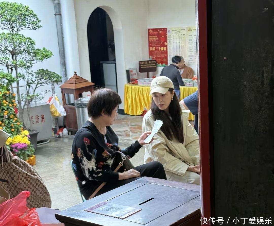 其实偶遇本身根本不是重点,重点是“谁都在”。观音堂这种地方,节奏慢悠悠的,人一多,谁和谁是一家,一眼就能看出来。当天的曾黎,全程不急不躁,手里拿着祈福用的东西,时不时低头捋一捋袋子口,生怕漏了什么、拿错了顺序,更怕一阵风把祈福的纸吹走。